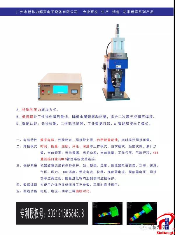 广州市新栋力超声电子设备有限司、广州市珑腾能源设备有限公司于2021年11月18日至20日亮相广交会馆亚太电池展,此次展品推出新品弯曲超声波金属焊机(主要低振幅用于大面积动力电池箔片焊接),现场观众表示极大兴趣,同时超声波线束焊接、模组超声波焊接均是本届新老朋非常关心的话题。